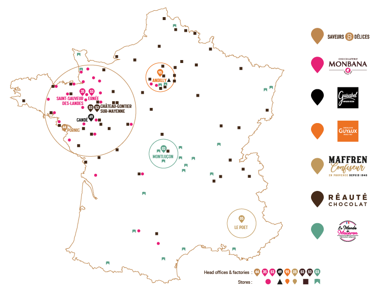 The group has a very varied offering, distributing its products in France through B2B and B2C channels – with a network of some 120 stores, branches and franchise outlets – and worldwide through several different retail networks in over 56 countries.